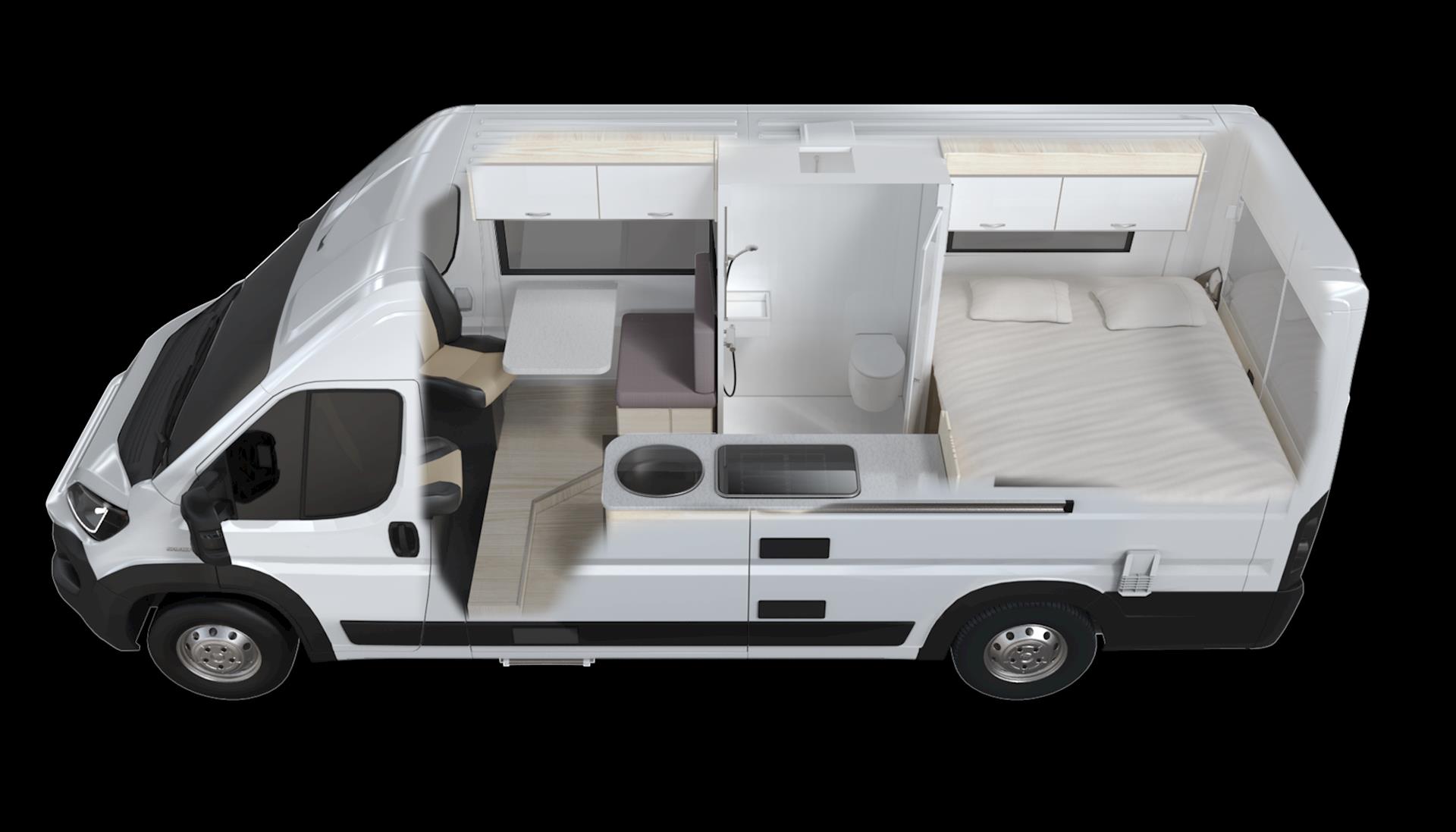 • Fully equipped kitchen: 95L 3-way fridge/freezer, Microwave, 2 or 3-burner gas stove