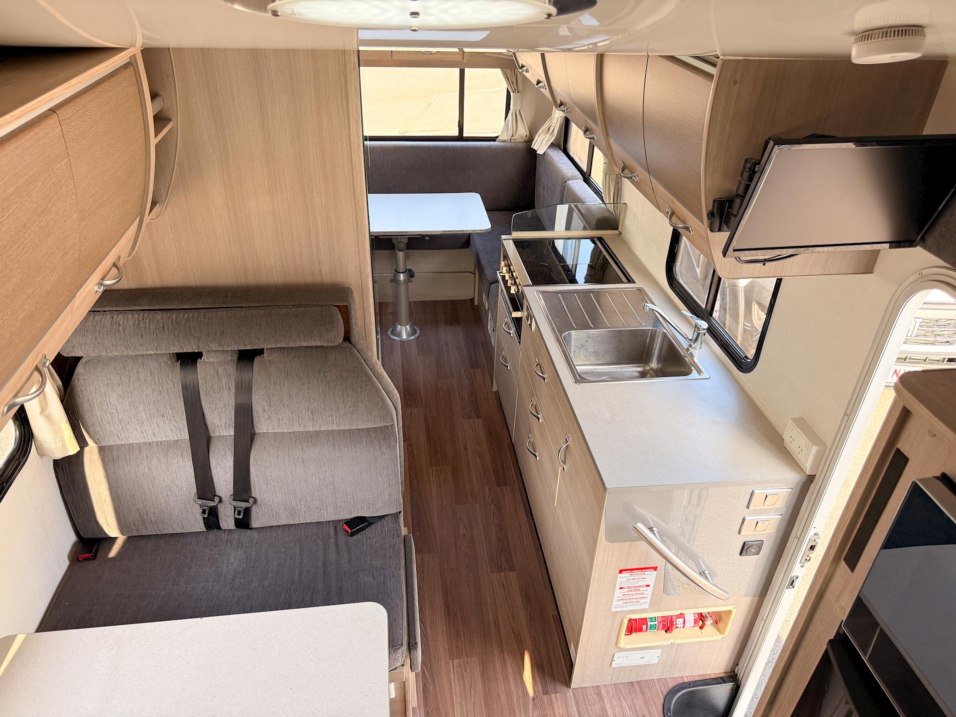 • Fully equipped kitchen: 190L 3-way fridge/freezer, Microwave, 3-burner gas stove