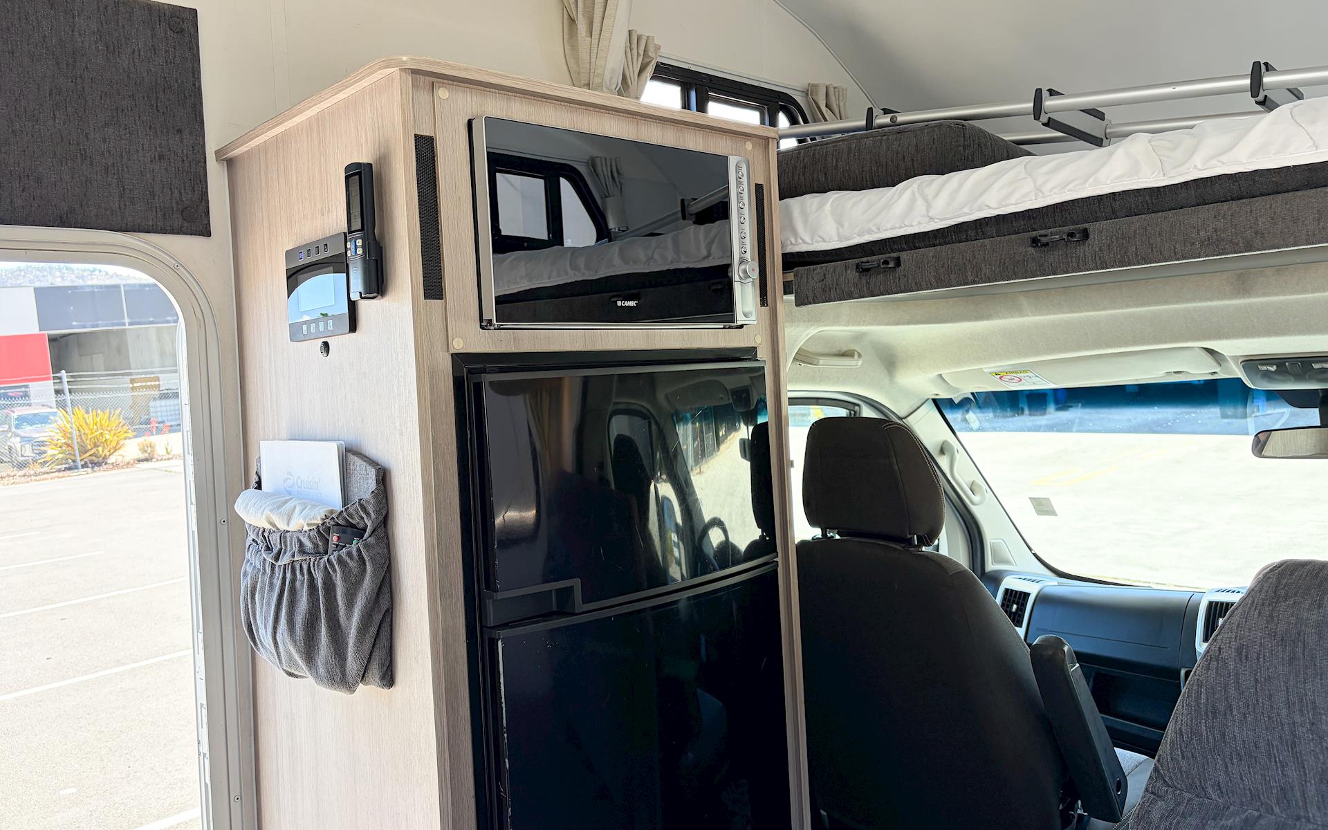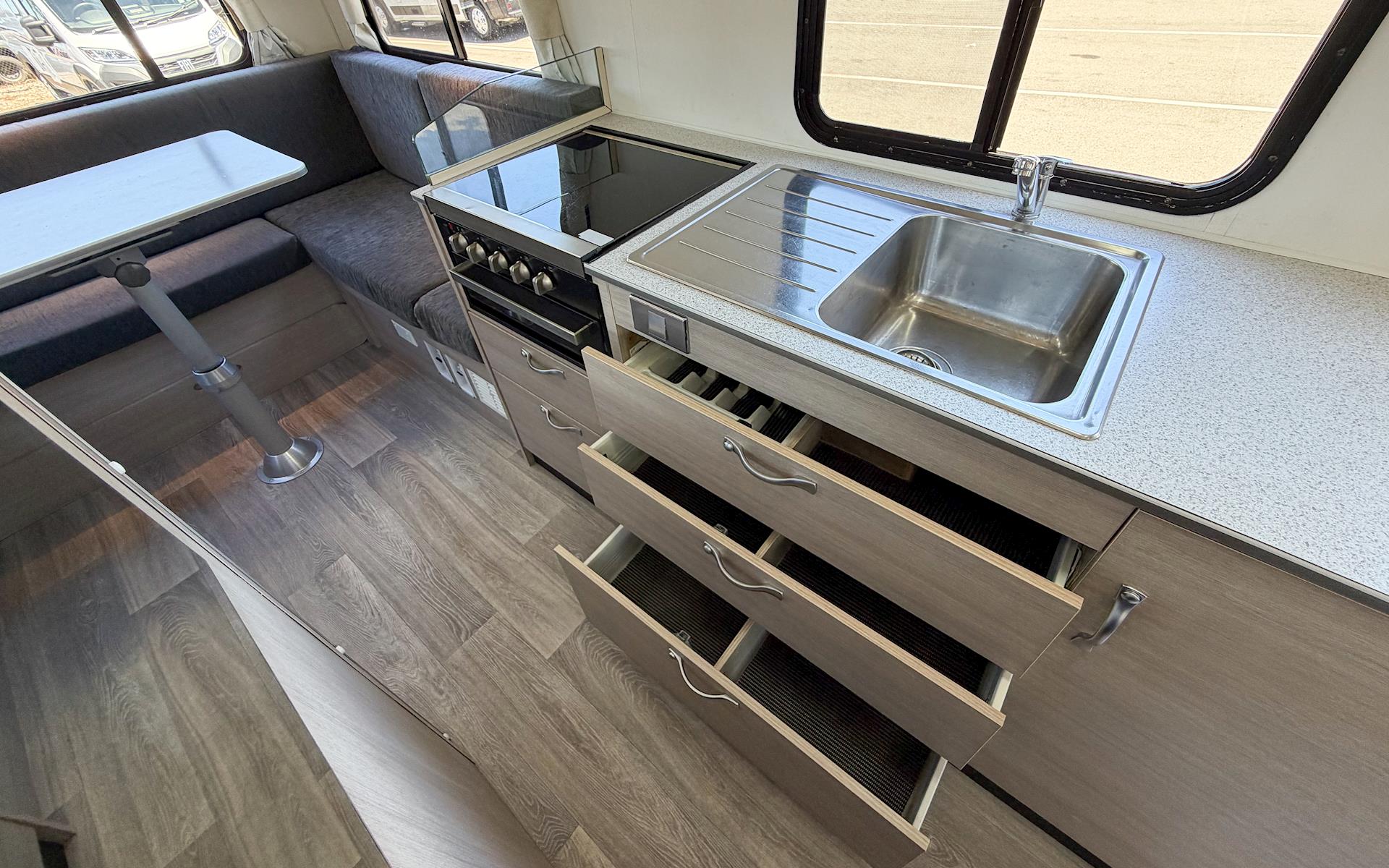 • Fully equipped kitchen: 190L 3-way fridge/freezer, Microwave, 3-burner gas stove